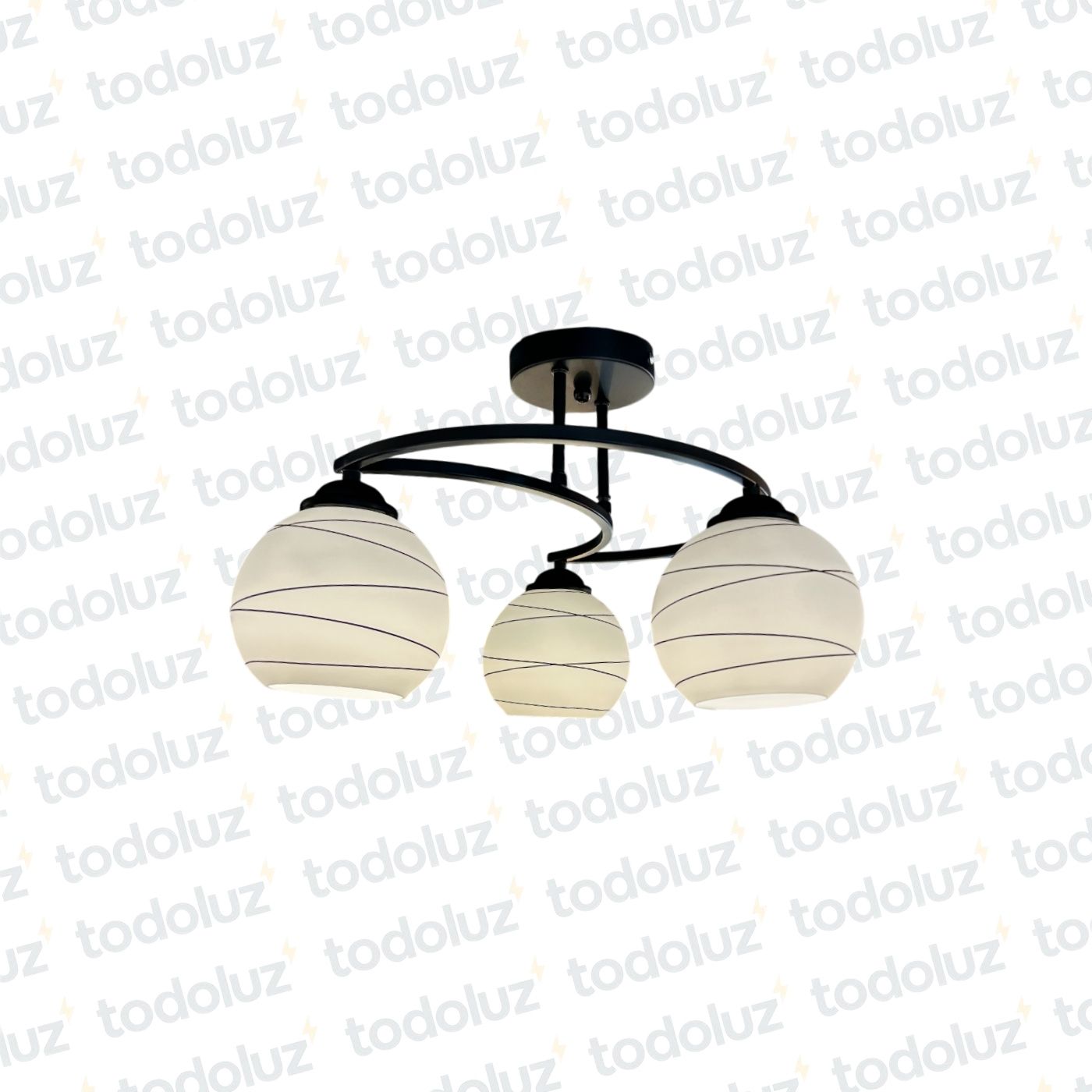 Araña Negra 3Luces Tul. Esferica Vd. Blanco c/Lineas Negras (53.139)