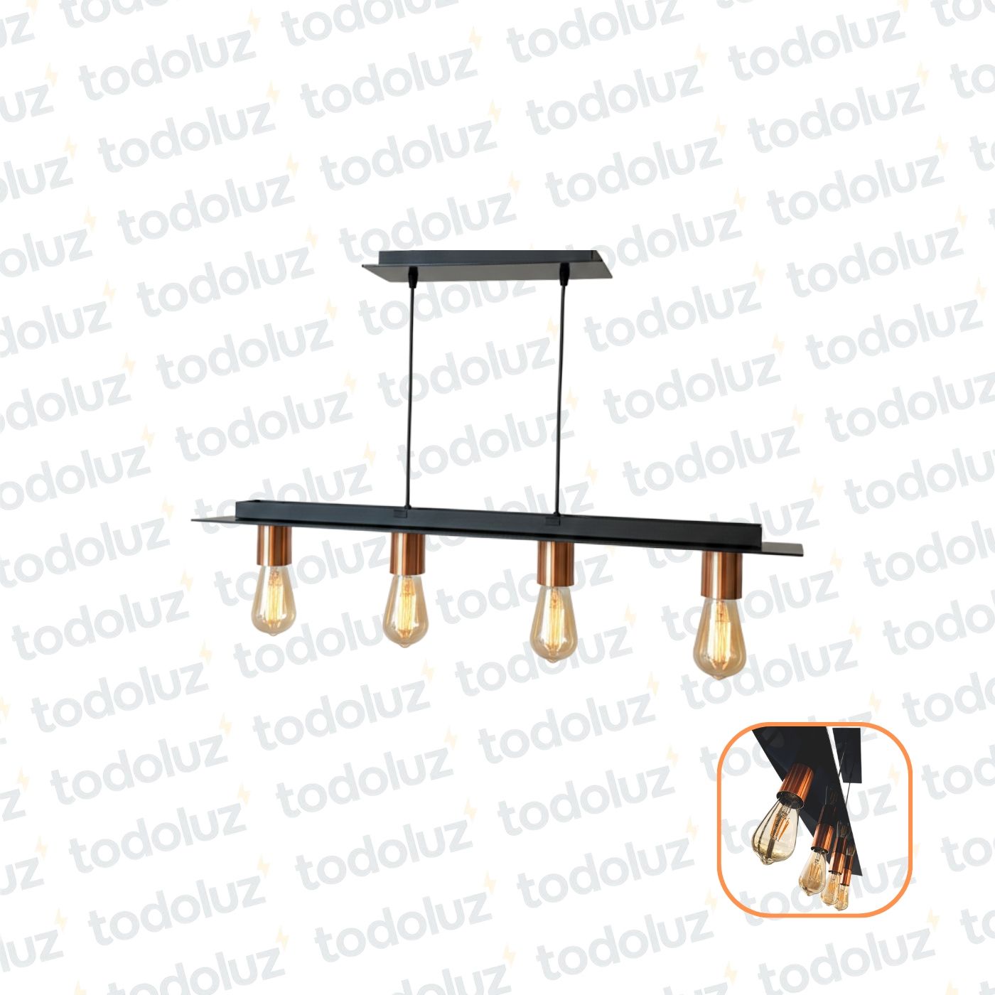 Colgante Barra Horizontal Negro Portalamp. Rose Cobrizo 4*E27 (54.1134)