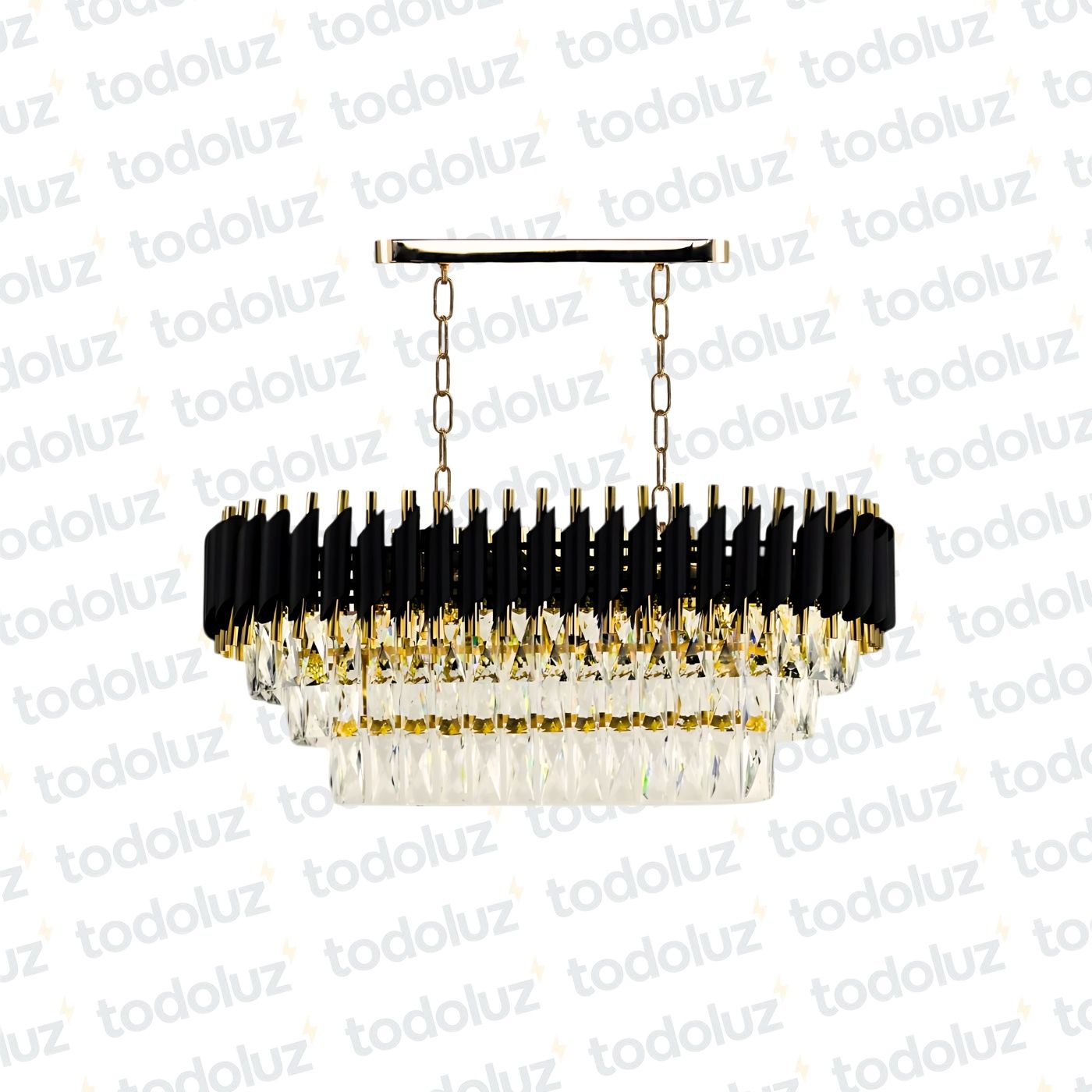 Colgante Rectangular Combinado Dorado/Negro c/Cadena Triple Nivel Cristales 8*E14 (54.1067)